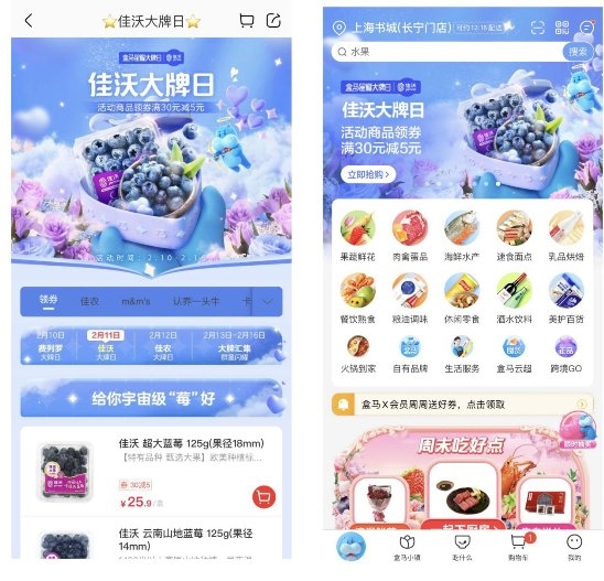 佳沃蓝莓大牌日盒马APP界面